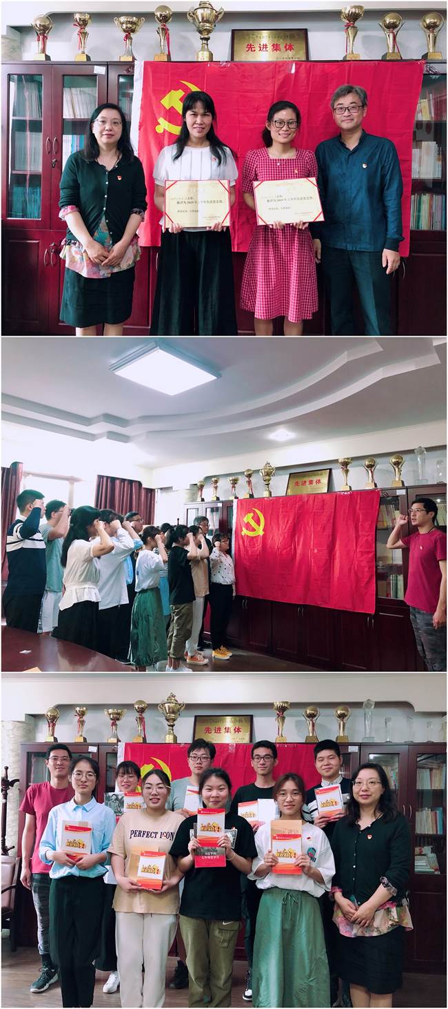 首先,党总支副书记(主持工作)王云宣读了304永利集团关于表彰2019年上半年先进党支部、优秀共产党员和优秀党务工作者的决定,第一、第二党支部荣获先进党支部称号;何晶莹、范彬彬2名同志荣获优秀共产党员称号;林春风、胡翊天2名同志荣获优秀党务工作者称号。颁发荣誉证书后,王云表示评优不仅是对先进的肯定和鼓励,更是对先进的鞭笞,号召全体党员向先进学习,在学习和工作中发挥党员先锋模范作用。