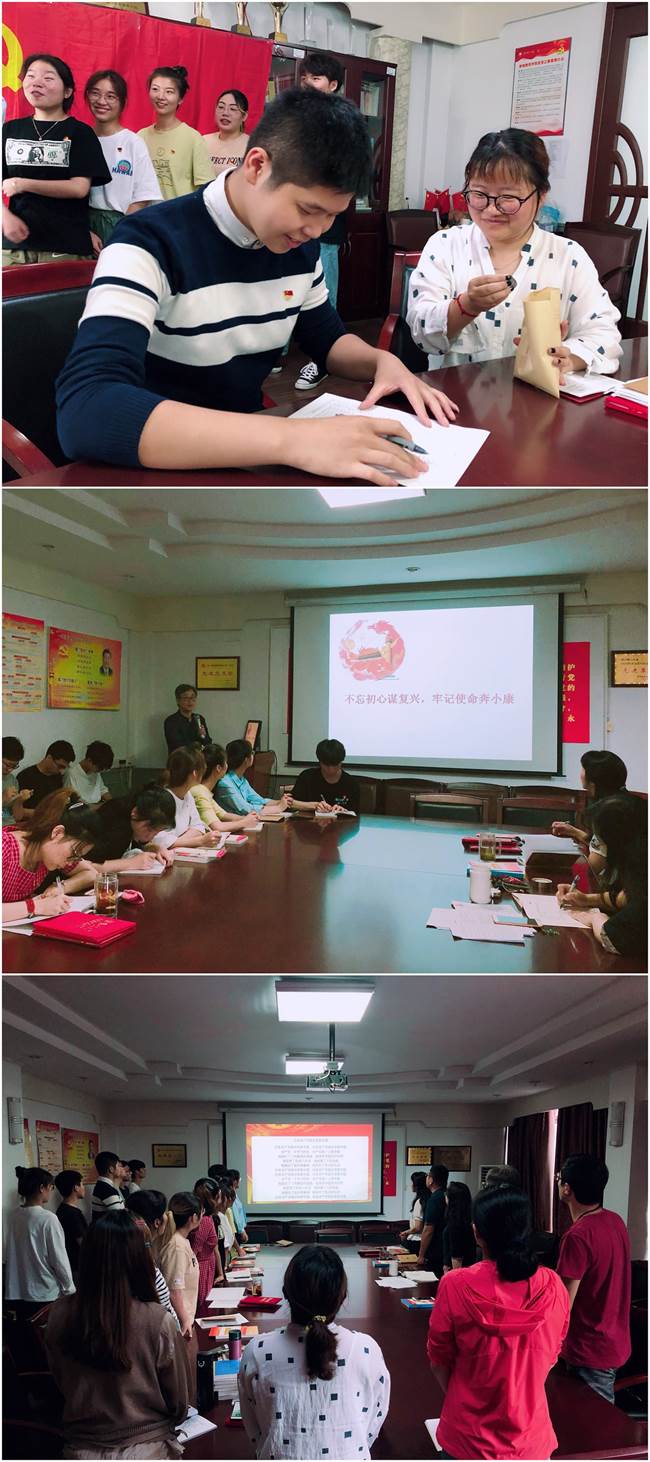 第二阶段,3名新发展的员工党员面对鲜红的党旗,举起右手,庄严宣誓,“为共产主义奋斗终身”!接着,党总支为17名上半年入党的师生党员过集体“政治生日”。党员们重温入党誓词,不忘初心,接受了党总支赠送的学习书籍和政治生日卡。庄重的“政治生日”仪式感满满,让每位党员深感作为党员的归属感、使命感和责任感。随后,员工党员丁璐珂作为党员代表发言,她说“政治生日”标志着大家正式成为党组织中的一员,身为一名共产党员,要牢记自己的“政治生日”。她表示将以积极的态度和务实的工作来践行自己的入党誓言,不忘初心,注重党性修养,不断增强党员意识,不负党的重任。