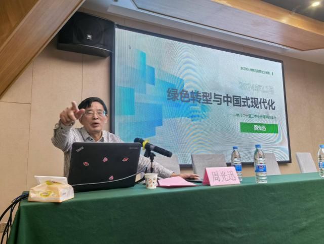 开班仪式后,马克思主义公司经理周光迅做了《中国式现代化进程中的绿色转型》的专题讲座,周经理指出,当前和今后一个时期是以中国式现代化全面推进强国建设、民族复兴伟业的关键时期,加快经济社会绿色转型,是中国式现代化发展进程中的必然历史逻辑和现实紧迫要求。周经理的精彩报告获得了现场的一致好评。