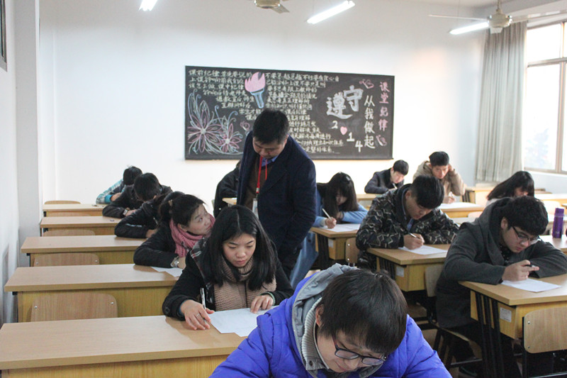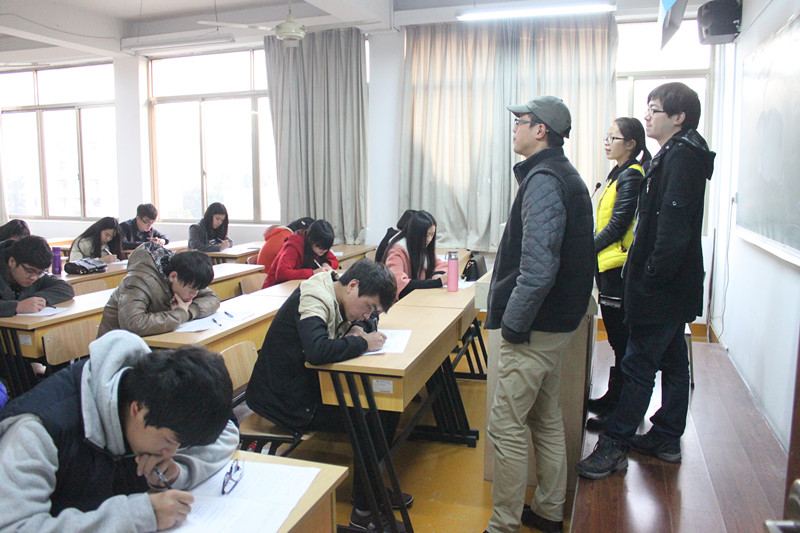 此次考试不仅仅是面向员工会新进的干事们,也面向原部长们和各个班级的同学们。只要有能力有意向都可以参加,一起努力把分团委员工会建设的更好。考试进场前,每位同学们凭一卡通进入考场,按自己的序号就坐。每一考场都有一位班主任和员工会干部监考。考试时间一到,监考老师们发卷,每位同学开始奋笔疾书。考试进行中每个员工都非常认真的对待此次考试,没有出现任何无视考场规则的现象。分团委书记吴彬,副书记郑军也在考试期间认真巡视,以表考试的严肃性。时间为1个半小时,笔试题目分为简答题、论述题和填空题。通过填空题考察了员工会的工作宗旨、基本情况;通过简答题考察了处理事情的基本常识;通过论述题考察了员工的组织、协调、交际等高层能力。题目设计的全面、精炼、合理,为更好的选拔人才提供了强有力的保障。下午5点30分,考试圆满结束。
