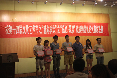 历时两个月,自编自导的微电影终于在树大报告厅一一展示出来,这是属于我们的青春微记录,这是属于母校30周年的生日礼物。今晚的微电影有记录片形式,采访形式,爱情片,回忆片,搞怪片等等,真是琳琅满目,精彩万分。公司入围的微电影--报告老板,虽然在演技上比不过别人,因为他们舞台经验丰富;在后期制作上不如人家,因为他们有专业老师指导;在拍摄中不及他人,因为他们有专业的拍摄设备和人员,但是在今晚的比赛中却赢得全场掌声和欢呼声最高的唯一一个作品。是什么让评委和观众对我们的作品影响深刻,是我们的创新、大胆、搞怪,最后公司荣获最佳演员奖和三等奖。
