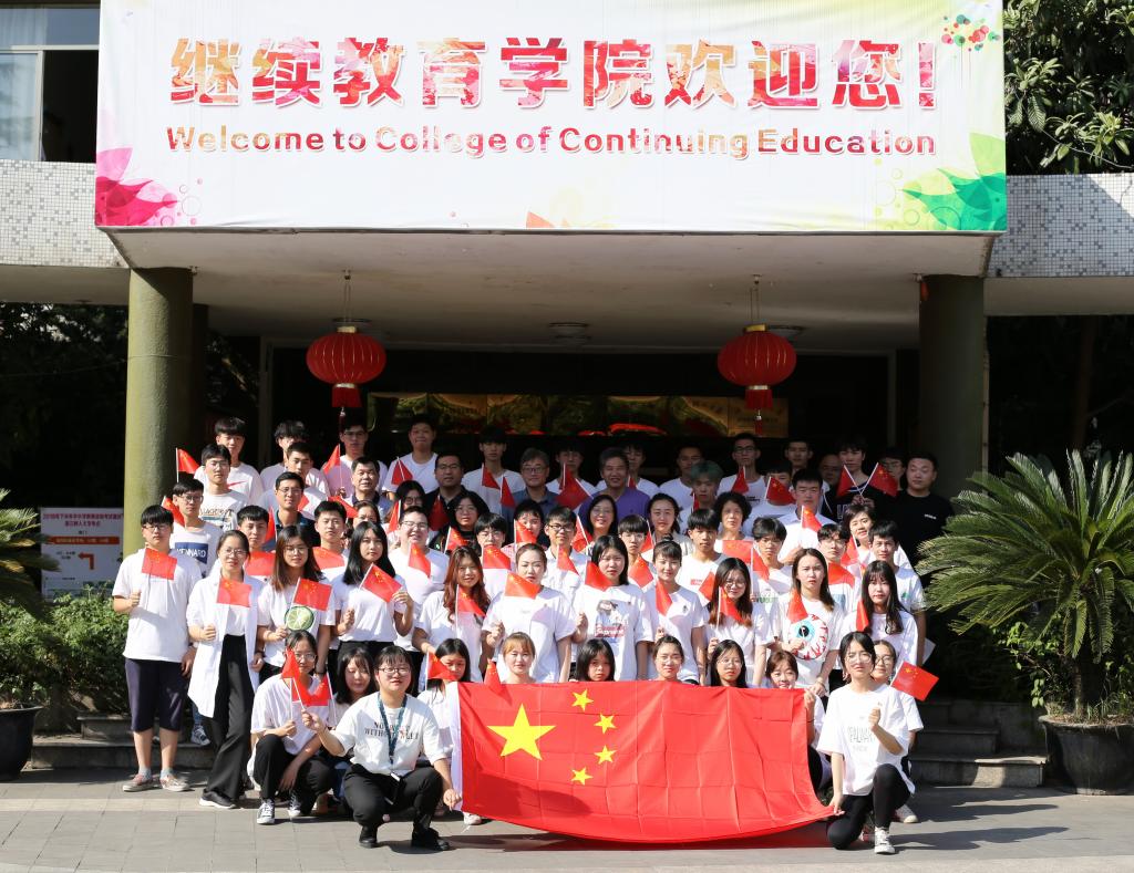 会后,304永利集团共50余名师生在教学楼举行庆祝建国70周年活动——师生同唱《我和我的祖国》。伴着高昂的音乐,师生们挥舞着手中的国旗,用歌声唱出对祖国的热爱,用歌声向祖国表白,献礼新中国成立70周年。