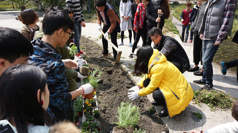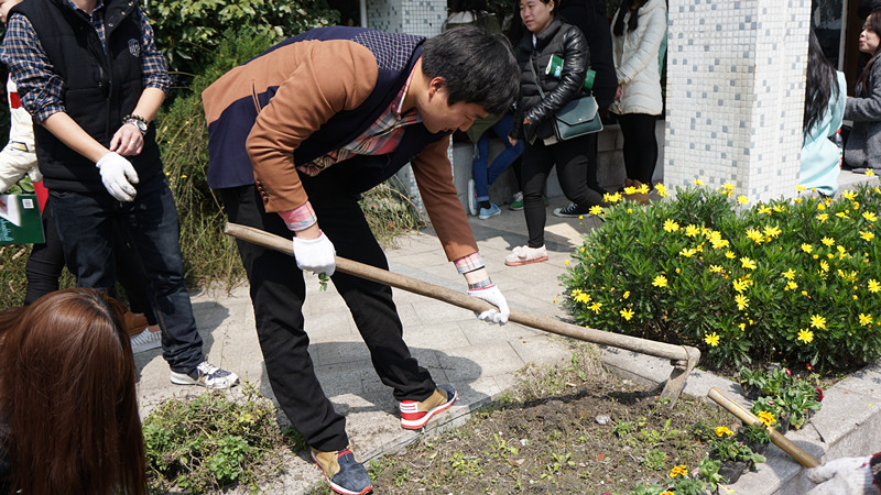 要说集体的力量是强大的,首先要做的清理土壤,在那么多人的共同努力下几乎瞬间土壤就被清理干净了。随后的刨土挖坑中,虽然那么多人锄头的动作稍显笨拙,但这丝毫不影响他们对植树节劳动的积极与热情。他们用双手扒出一个一个坑,不嫌脏不嫌累不嫌苦,看到的只是他们一张张欢乐的笑脸。紧接着就是把花草种进土壤里。栽植时,一人扶正花苗,一人填土。现场一片尽然有序的样子,每个人合作的都非常愉快。