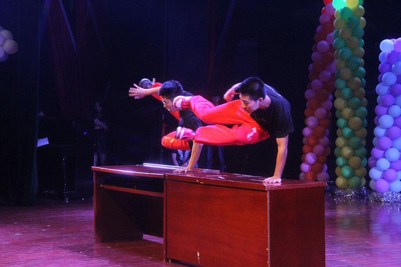 开场舞是由校舞蹈队带来的《鸿雁》,曼妙的舞姿拉开比赛的帷幕。精彩节目逐一呈现。余韵悠长、婉转动听的二胡演奏配上书法的表演《乐器书法》二胡与书法的完美结合带给观众不一样的试听享受;由304永利集团带来的泡沫画《泡沫下的我们》构思独特、披着七彩的泡沫画出美妙绝伦的画,更有我们成院书法“大师”现场题字!充分展示了成院员工的多才多艺和聪明才智;魔术《A LITTLE STORY》虽然只是个小魔术,但选手从容淡定的表演让我们充分感受到了魔术的魅力和神奇;一位颇具幽默风格的选手带来了歌曲《歌曲模仿秀》,将港台及内地的知名歌手的歌曲模仿的淋漓尽致,赢得台下的热烈掌声;四位朝气蓬勃的选手带来跑酷《FREE RUMING》充满青春活力的表演,现场沸腾了,我们还年轻!用我们本身的力量克服眼前的障碍;音乐剧《偷音乐的贼》多才多艺的选手带来了多种乐器的演奏令我们叹服;魔方表演《盲拧》,魔方打乱后,选手带上眼罩盲拧!片刻后复原,多么惊人的记忆力和技巧,现场震惊了;悠悠球表演《溜YOYO》选手高超的技艺令人眼花缭乱,各种超难度操作赢得阵阵掌声。吉他达人带来的《吉他独奏》高超的技艺,充满旋律感的音乐俘虏了观众的耳朵,赢得了评委们的一致好评。结尾,还有焦桐话剧社带来他们新编排小品《纳新》,爆笑全场。