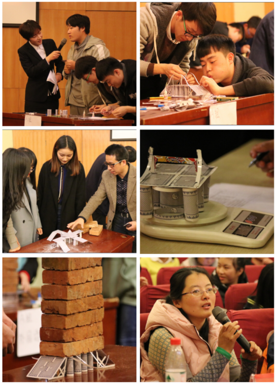 比赛采用现场搭桥形式,每组选手需在三十分钟内使用规定的工具和材料进行搭桥,作品完成后由专业评委对作品进行创意打分,并称重、加载,最终成绩由评委的创意打分和桥身承重共同决定。比赛场面热烈,观众们为选手们搭起的纸桥而惊叹,更为桥的文化内涵而折服。