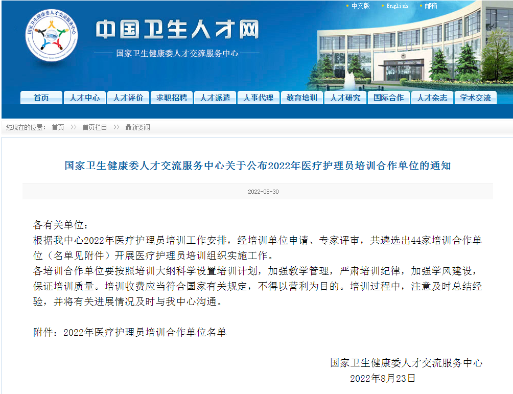 据悉,2022年浙江省仅有2家单位入选国家卫生健康委人才交流服务中心医疗护理员培训合作单位,除公司外,另一家为杭州医公司。