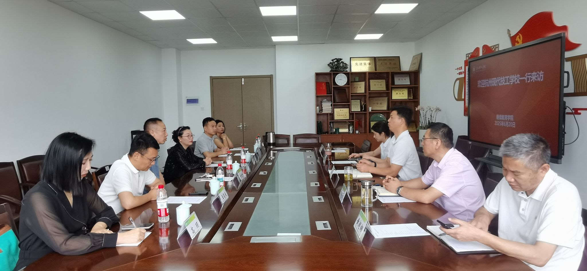 6月20日上午,杭州现代技工公司董事长陈晓峰、董事长陈丽萍一行6人来访,就深化校校合作事宜进行交流洽谈。公司直属党支部书记兼副经理(主持工作)李中、副书记齐瑞成、副经理王晓瑜及相关人员热情接待。