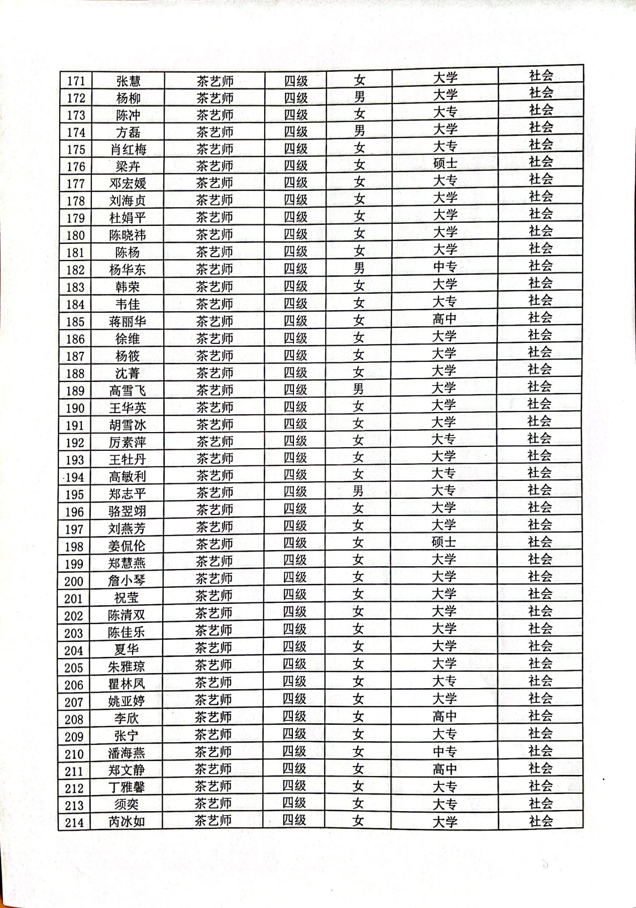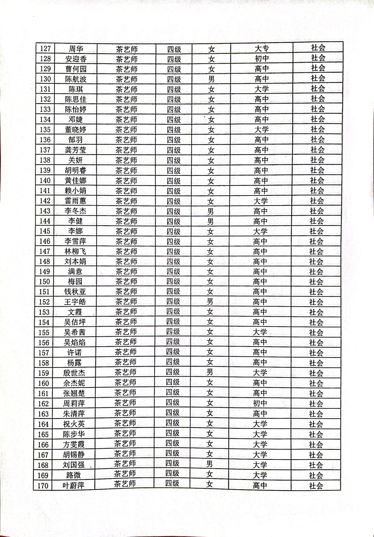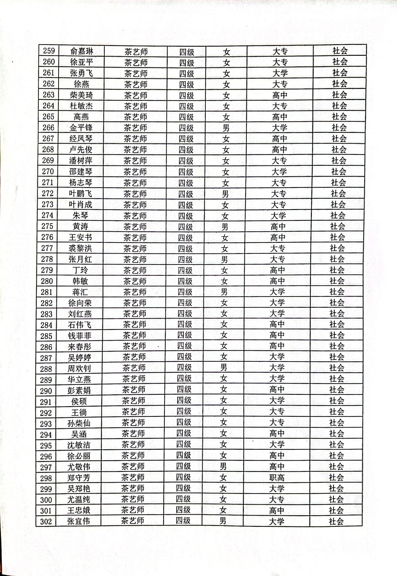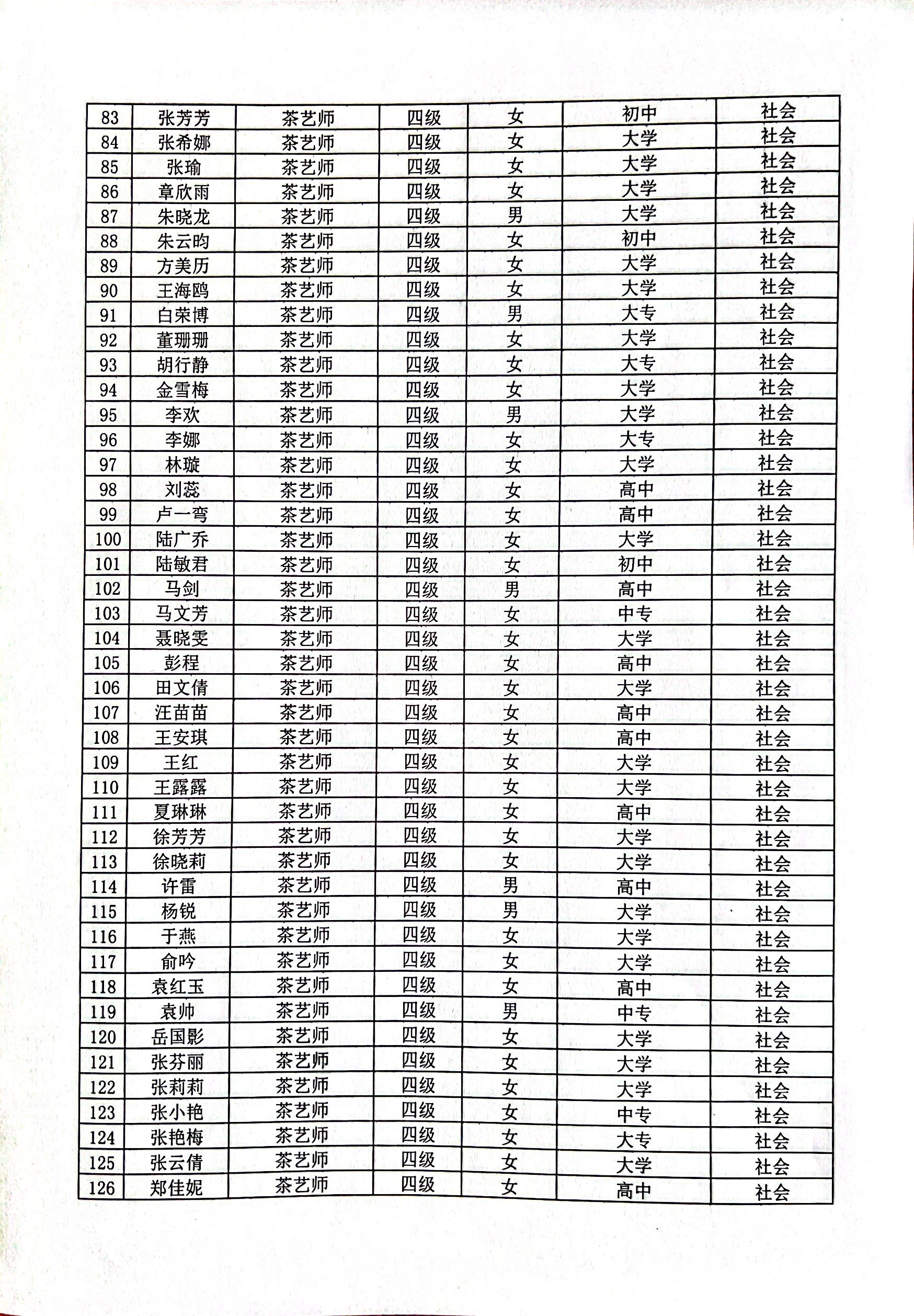 现将通过2022-07-33136批次茶艺师四级(中级)、2022-07-33218批次茶艺师五级(初级)职业技能等级认定资格审核考生信息予以公示,公示期5月2日至5月8号,如对公示情况有异议,请电话或书面联系公司培训中心。