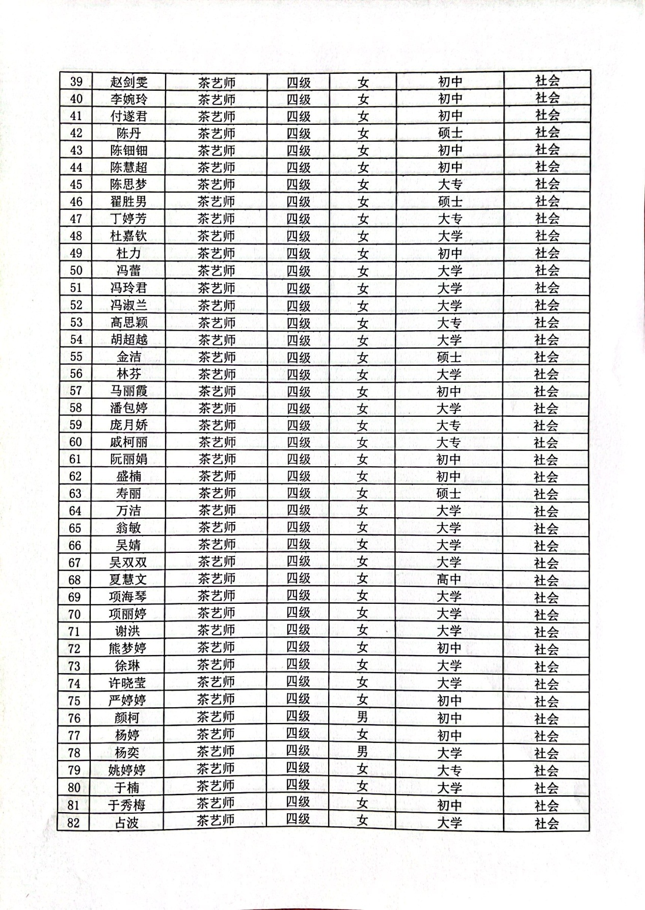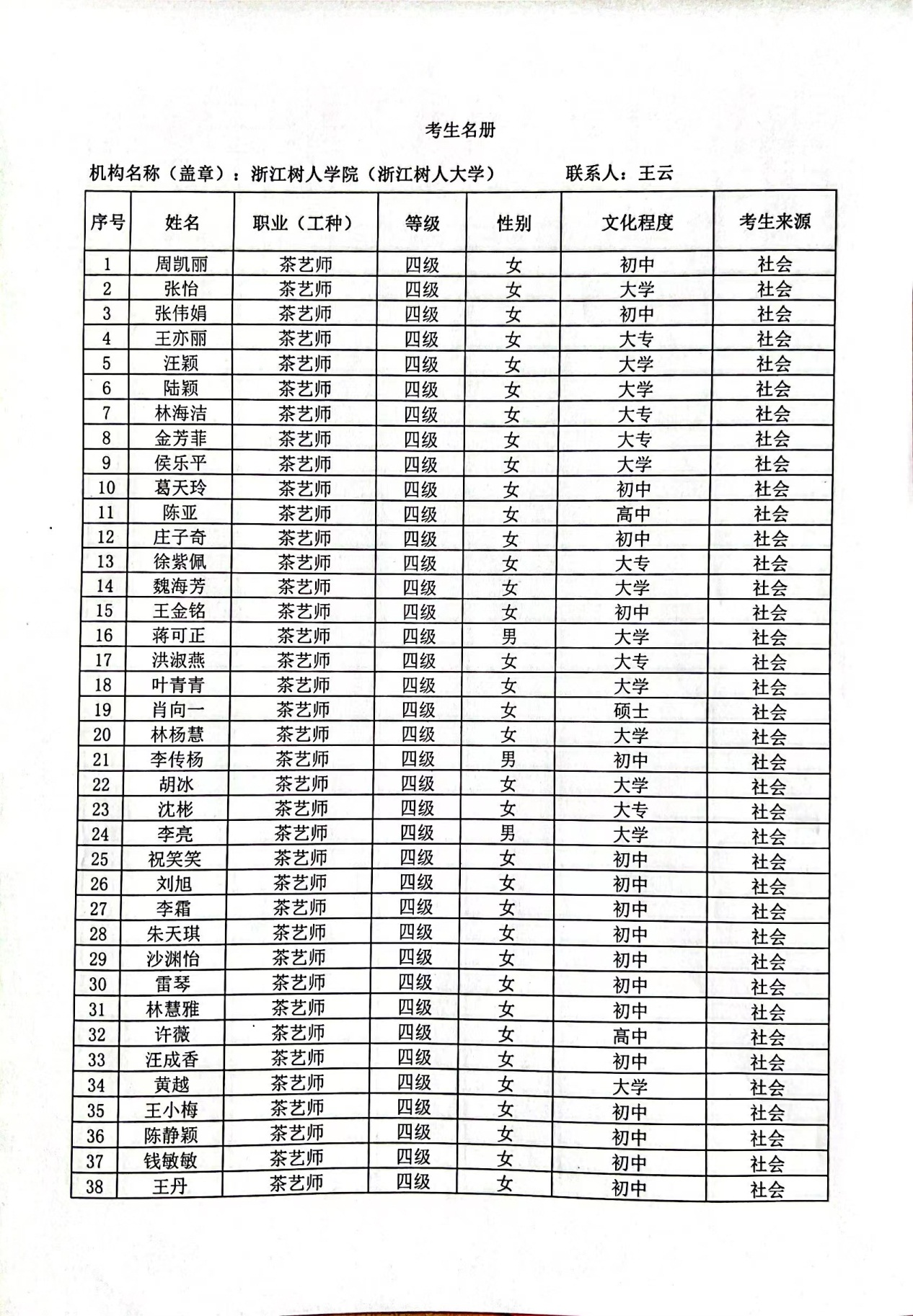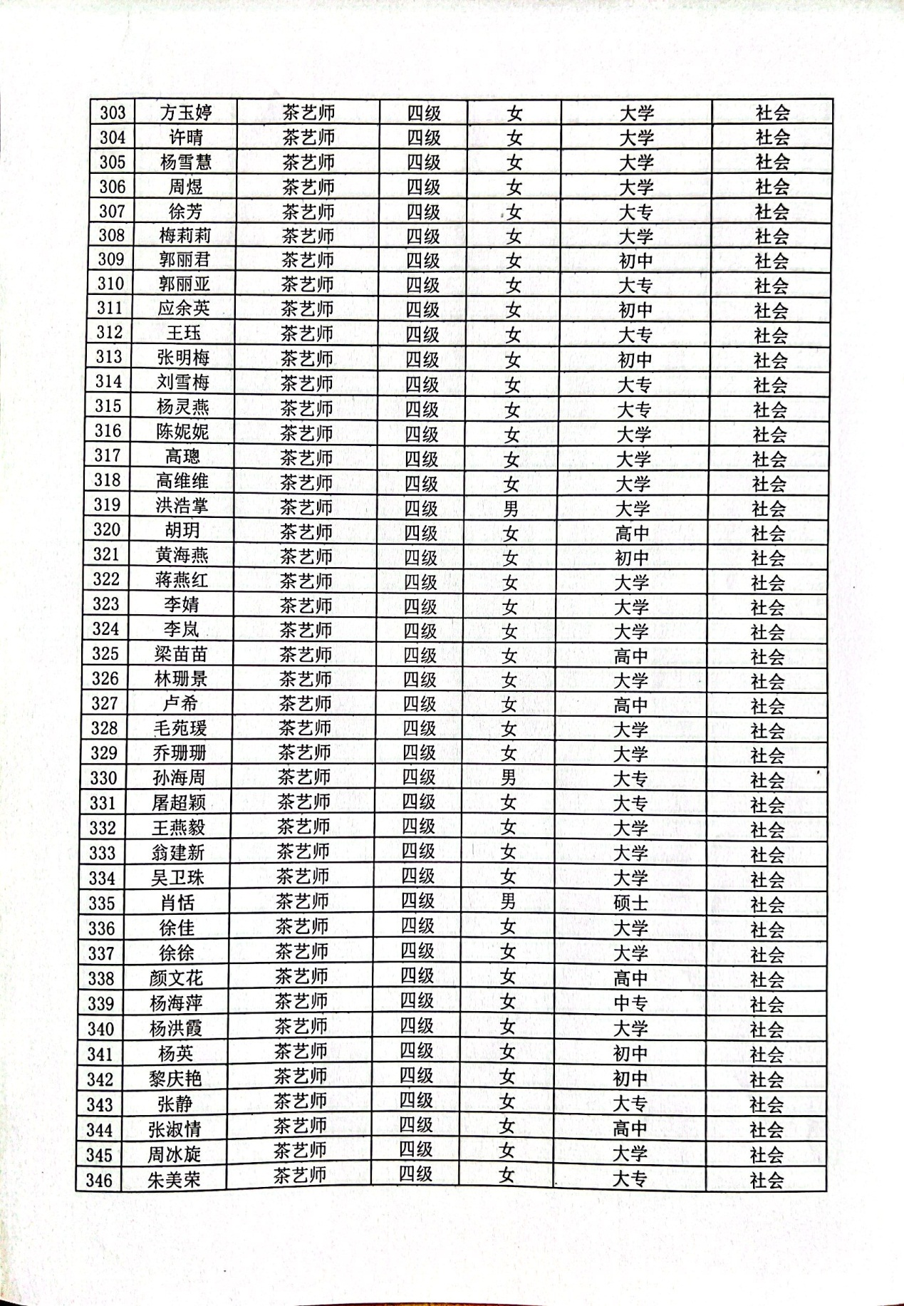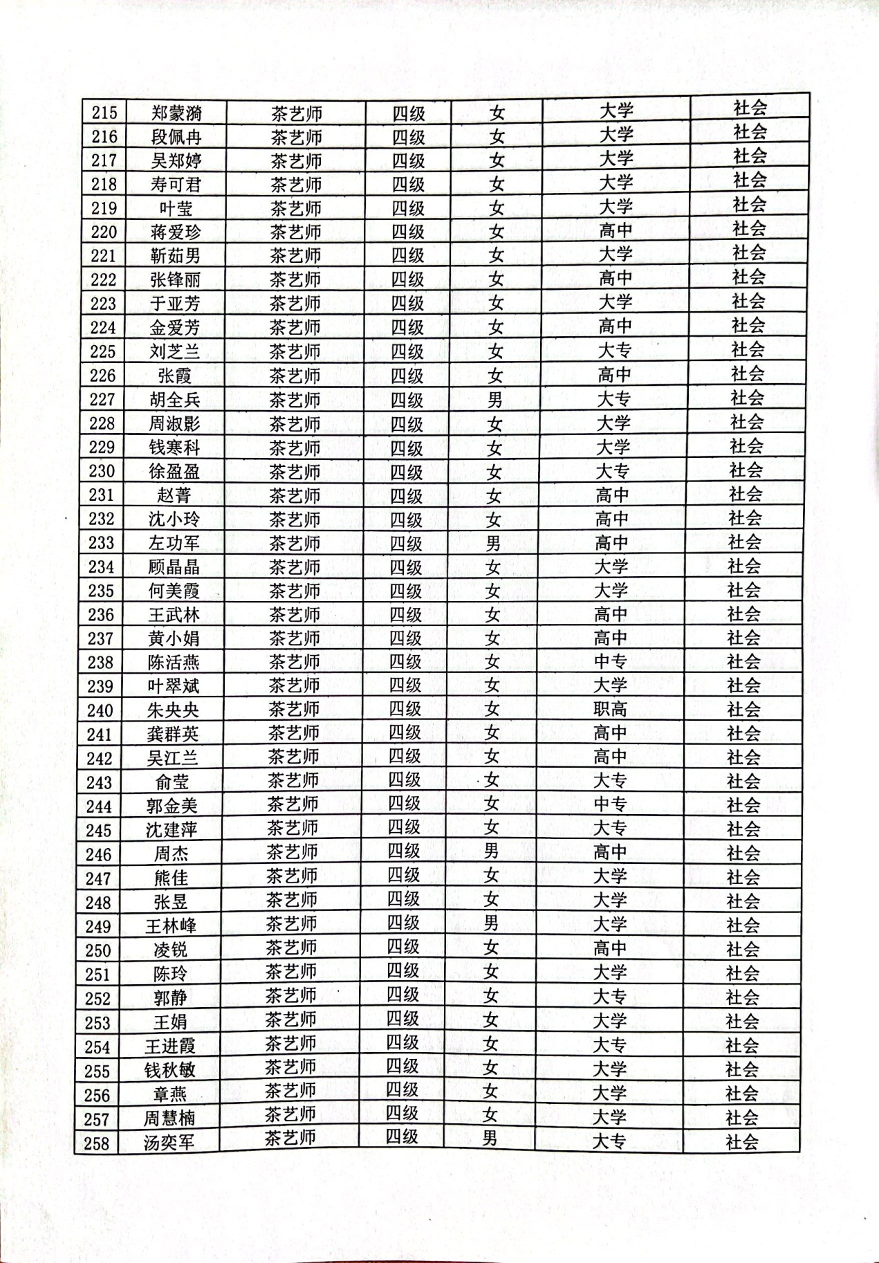 现将通过2022-07-33136批次茶艺师四级(中级)、2022-07-33218批次茶艺师五级(初级)职业技能等级认定资格审核考生信息予以公示,公示期5月2日至5月8号,如对公示情况有异议,请电话或书面联系公司培训中心。