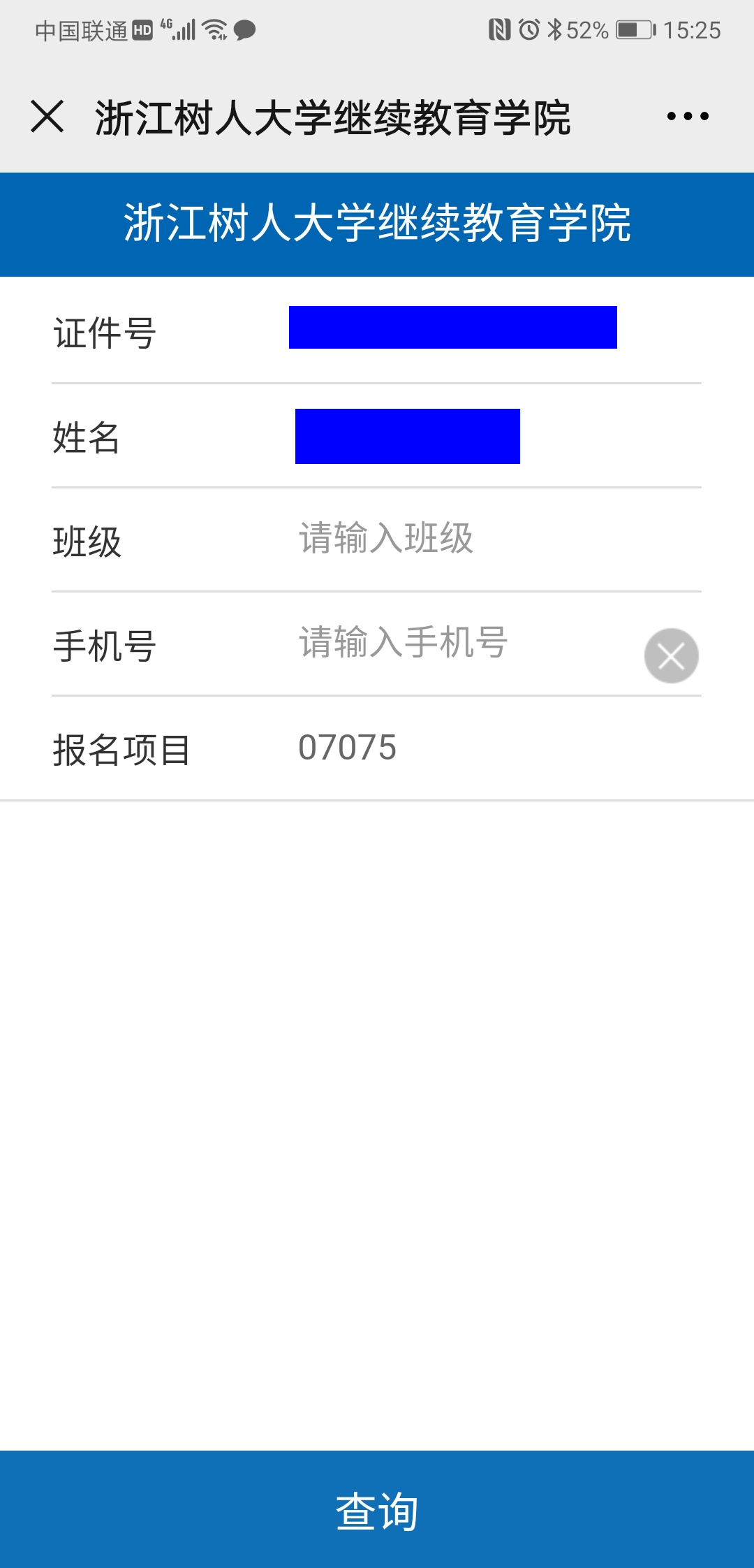 2、填写身份证号码、姓名、班级(全部填写“212考次”)、手机号、课程代码(例:07075,必须5位代码)