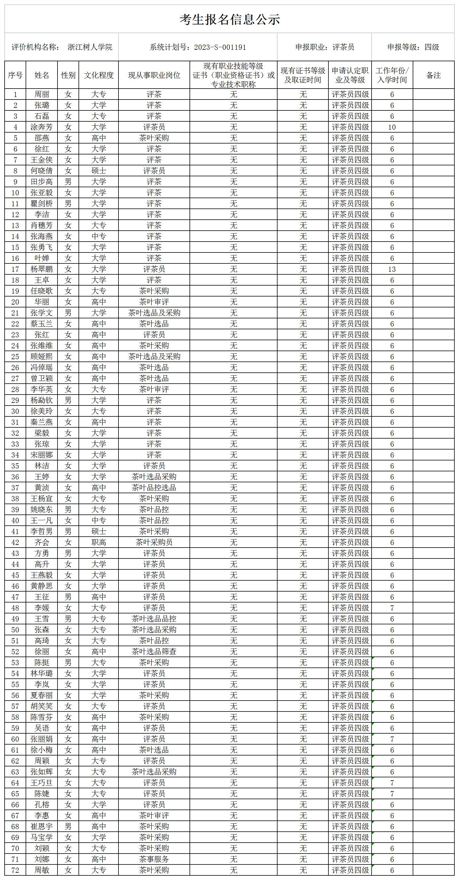 现将通过2023-S-001191批次评茶员四级(中级)职业技能等级认定资格审核考生信息予以公示,公示期2023年4月3日至4月10日,如对公示情况有异议,请提供有效证据,并实名电话或书面联系公司职业技能认定中心。