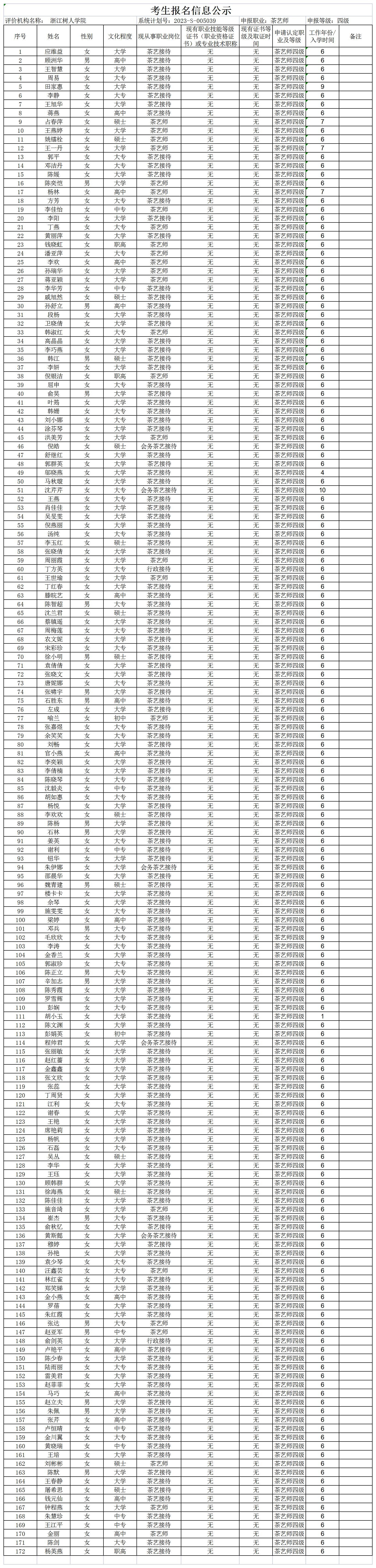 现将通过2023-S-005037、2023-S-005039批次茶艺师四级(中级)职业技能等级认定资格审核考生信息予以公示,公示期2023年6月5日至6月9日,如对公示情况有异议,请提供有效证据,并实名电话或书面联系公司职业技能等级认定中心。