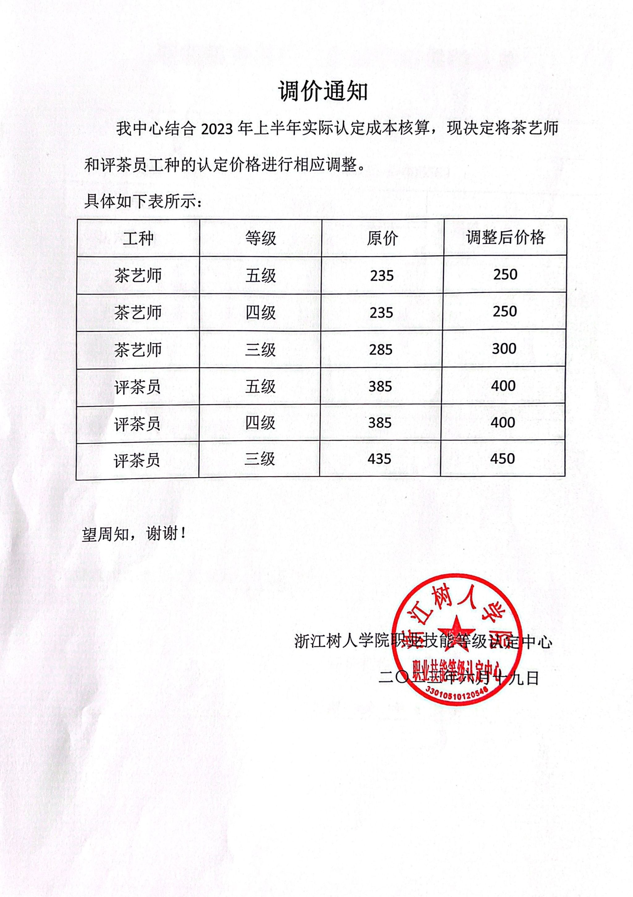 关于2023-S-002667、2023-S-002668批次评茶员职业技能等级认定考生信息的公示