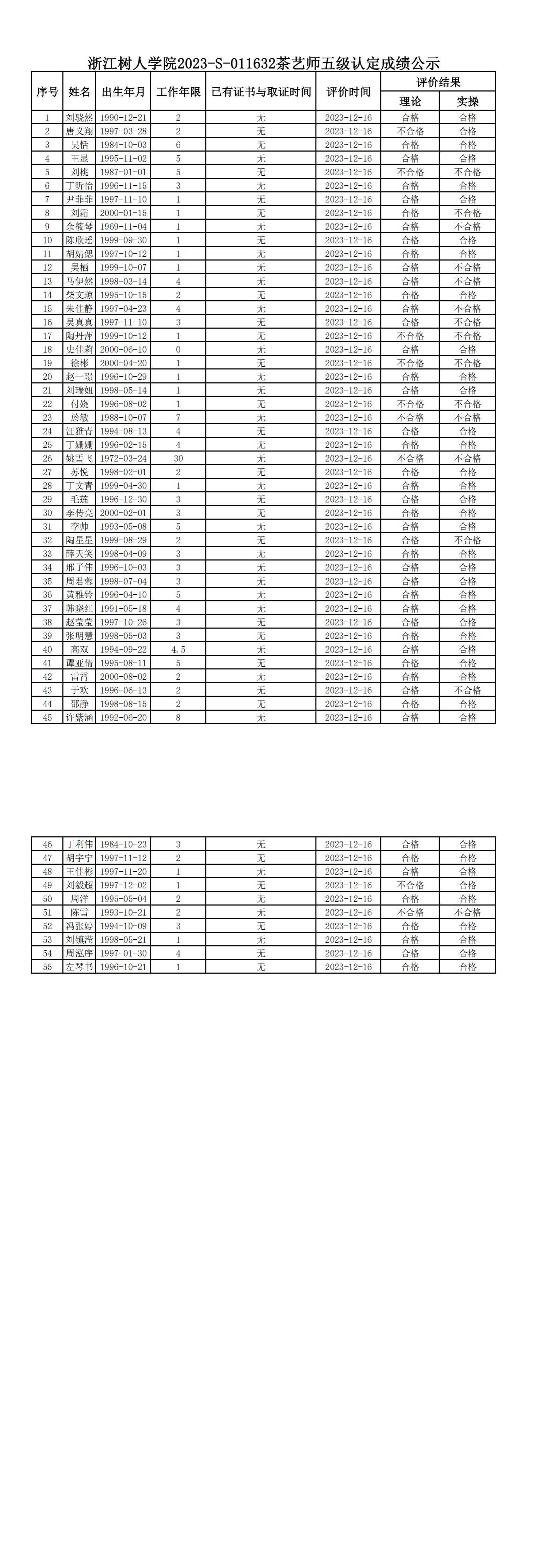 根据《浙江省人力资源和社会保障厅办公室关于印发<浙江省社会评价组织职业技能等级认定操作指南(试行)>的通知》,经审核,现将2023-S-011632批次茶艺师五级职业技能等级认定成绩予以公示,公示期2023年12月21日至12月27日,如对公示情况有异议,请提供有效证据,并实名电话或书面联系公司职业技能认定中心。