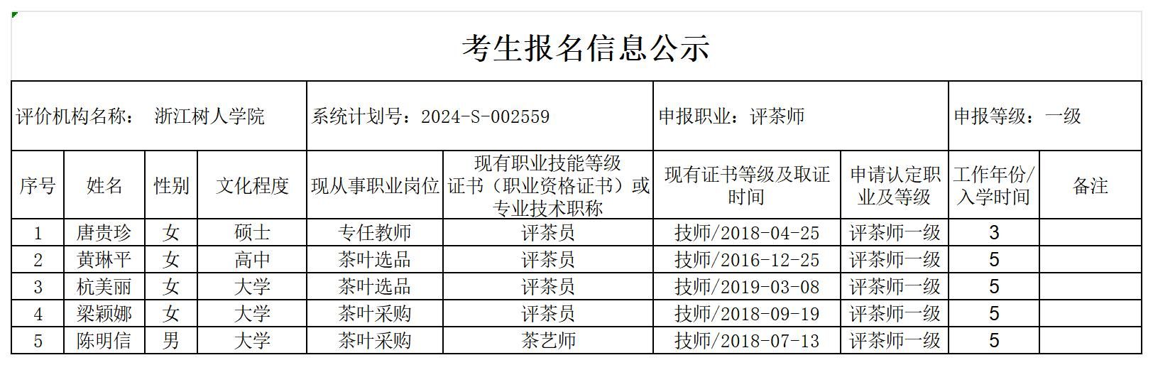 现将通过2024-S-002559批次评茶师高级技师(一级)职业技能等级认定资格审核考生信息予以公示,公示期2024年5月13日至5月17日,如对公示情况有异议,请提供有效证据,并实名电话或书面联系公司职业技能认定中心。