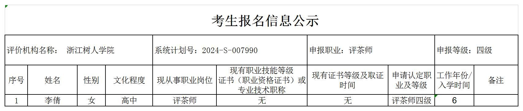现将通过2024-S-007990批次评茶师中级工(四级)职业技能等级认定资格审核考生信息予以公示,公示期2024年8月12日至8月16日,如对公示情况有异议,请提供有效证据,并实名电话或书面联系公司职业技能认定中心。