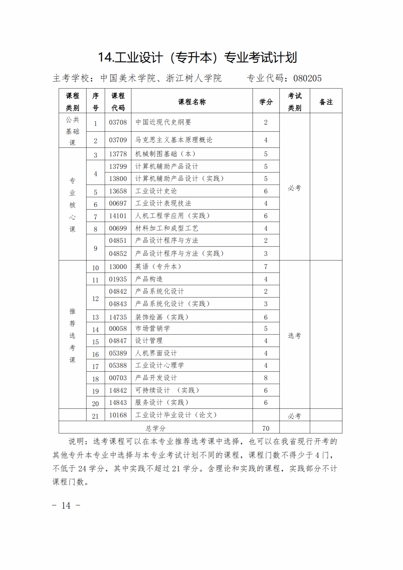 [080205]工业设计(专升本)专业考试计划(新计划)